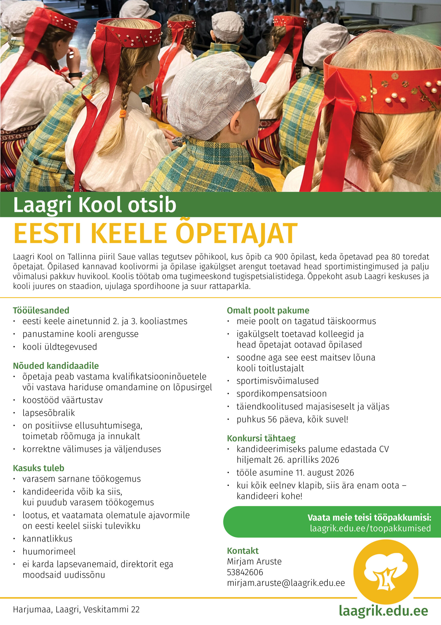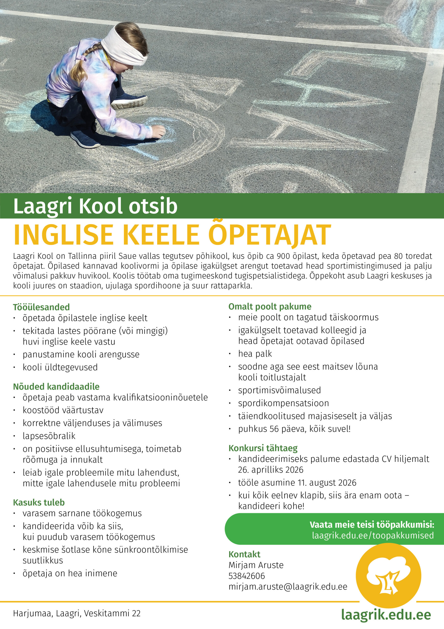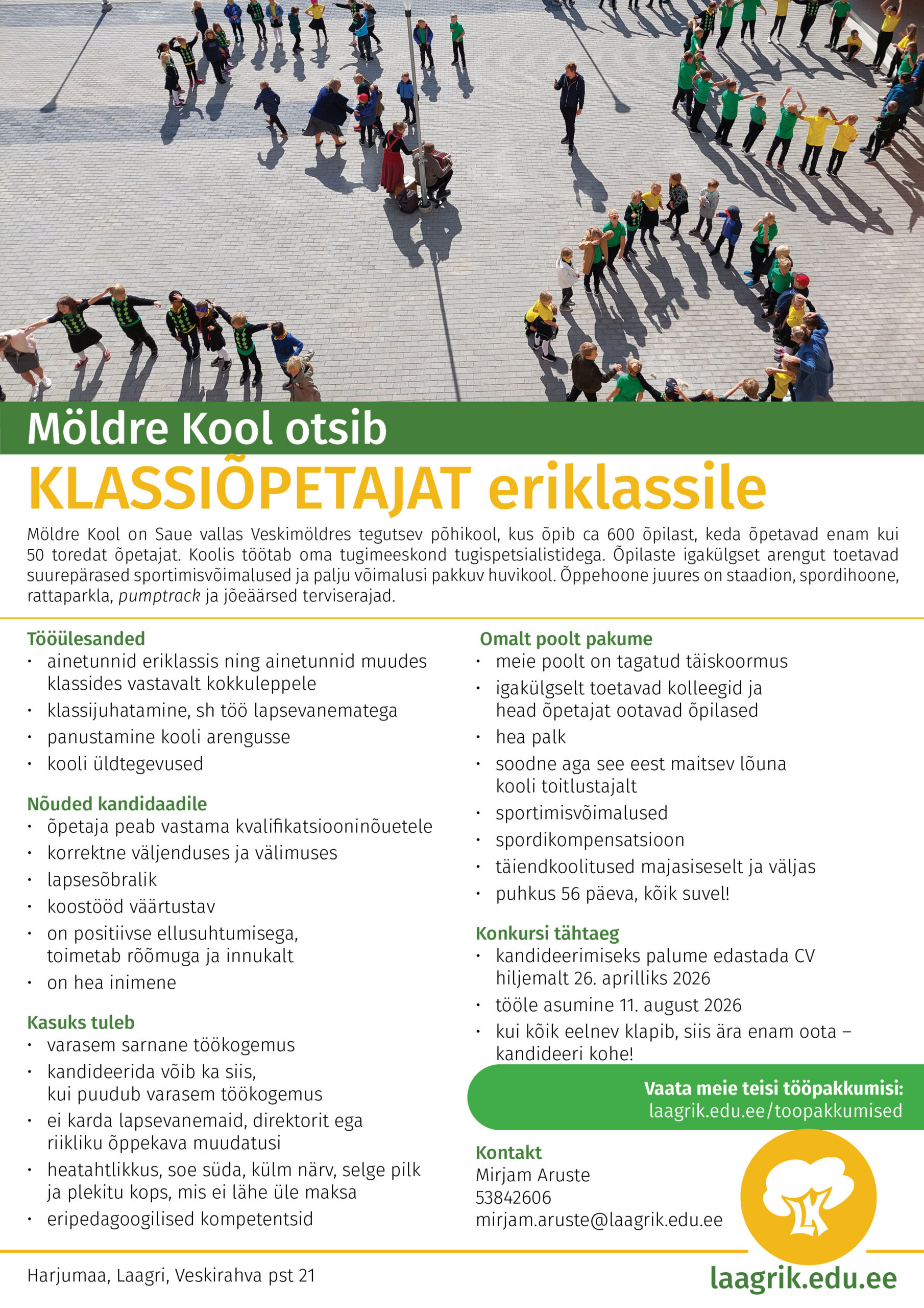 Laagri Kool ja Möldre Kool ootavad oma vahvasse kollektiivi häid inimesi!