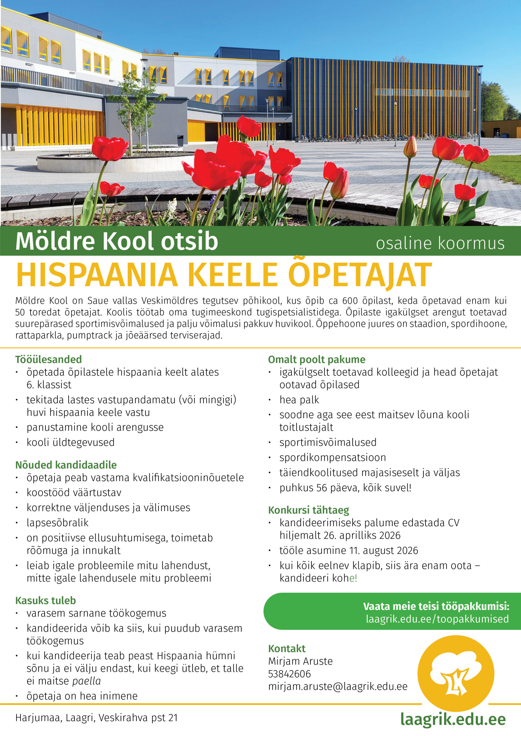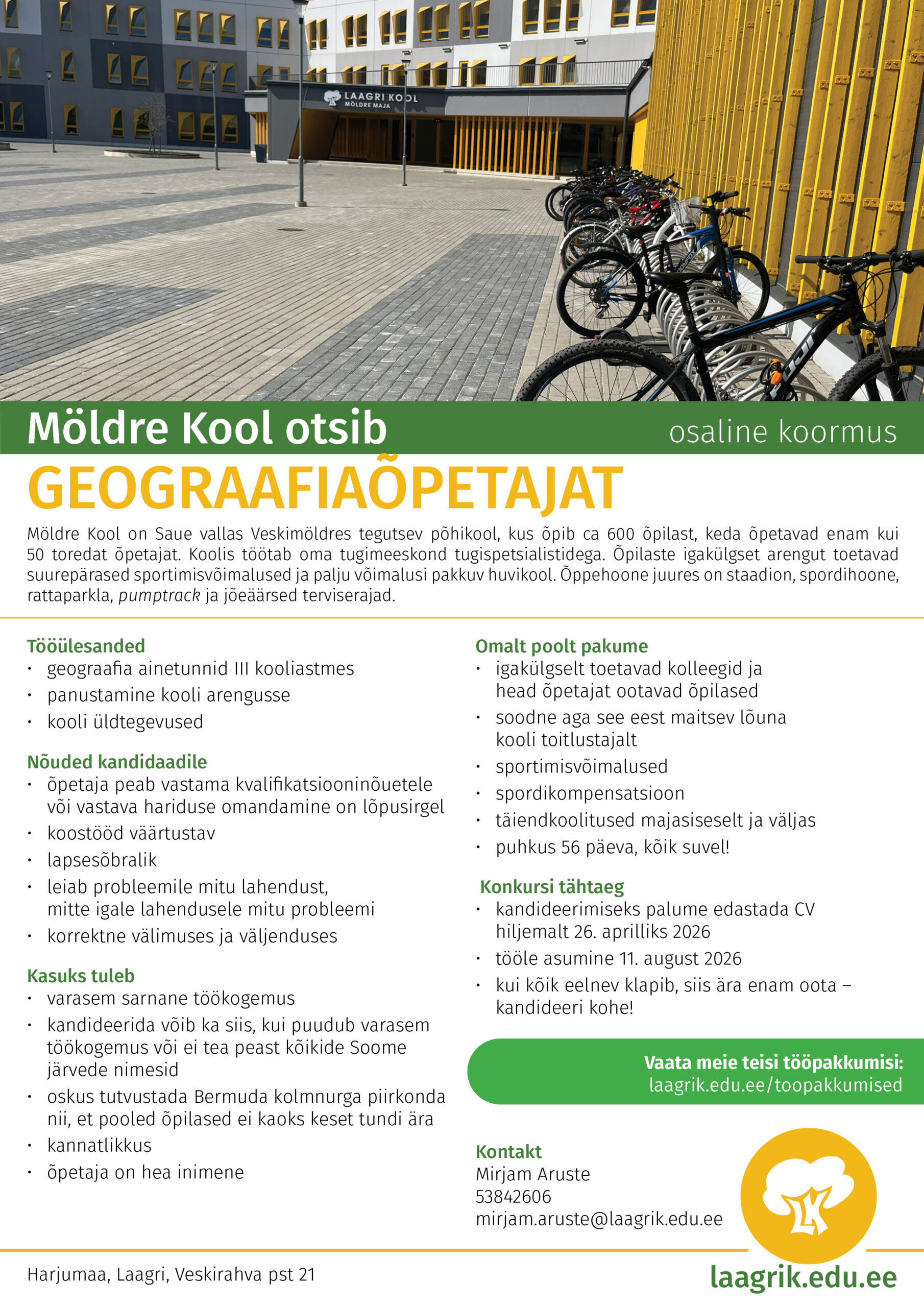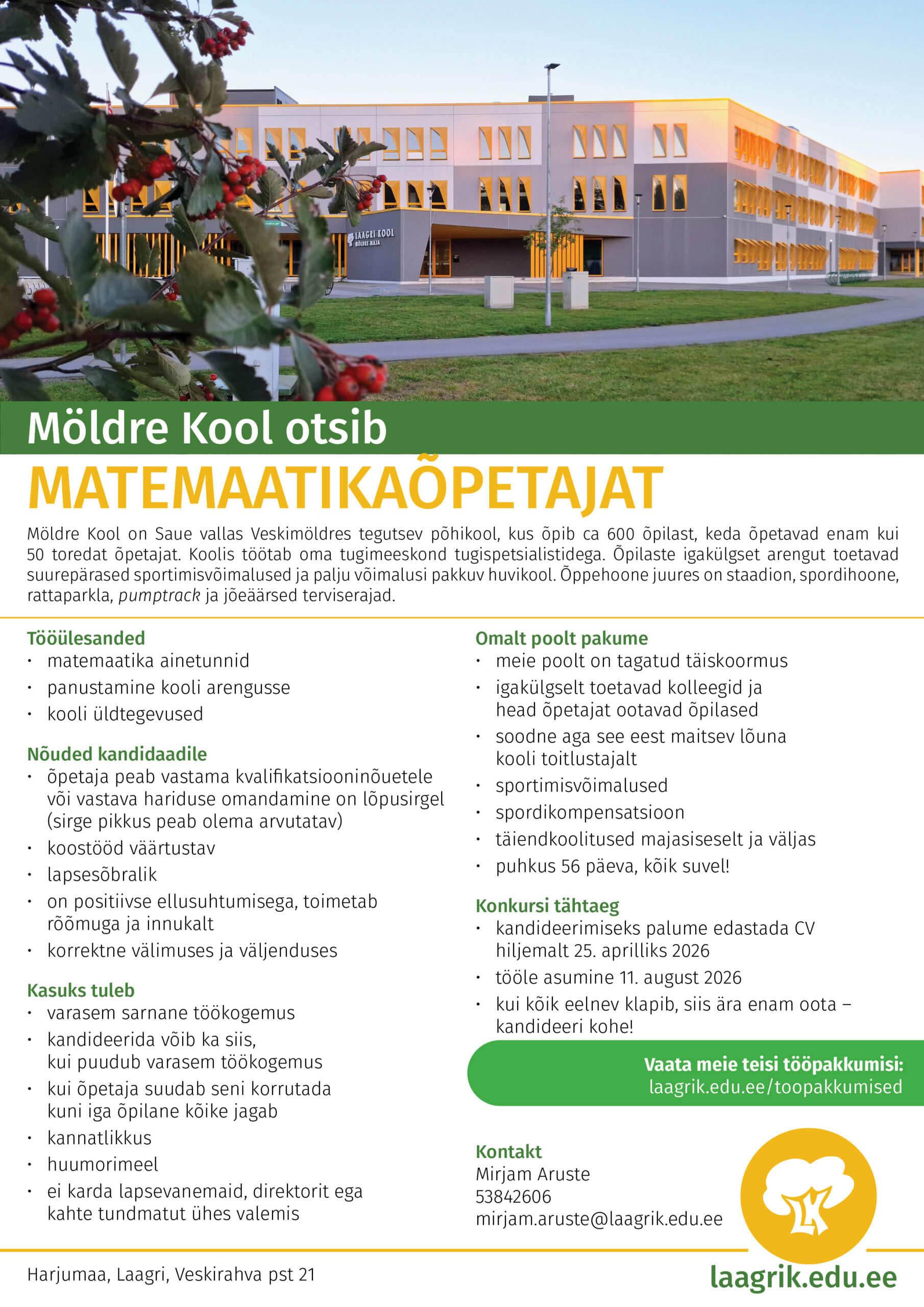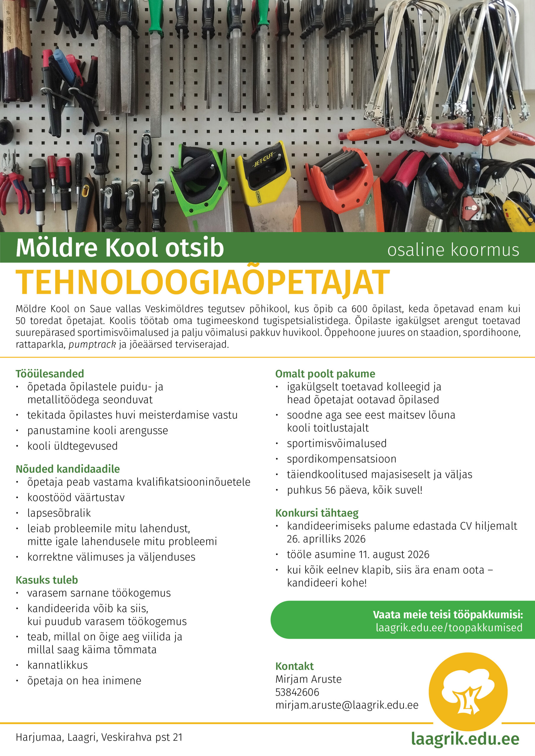Laagri Kooli Möldre maja (tulevane Möldre Kool) tööpakkumised